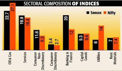 Sectoral represenation of the Sensex and Nifty.