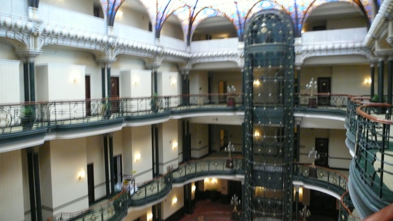 These images show the hotel in all its splendour. Please note the magnificent Tiffany-style roof ( believed to be the largest such in the world), and the ancient Art Deco elevator ( which works)! The massive chandelier at the entrance dazzles all those who walk in.... and I sure am glad we did!!