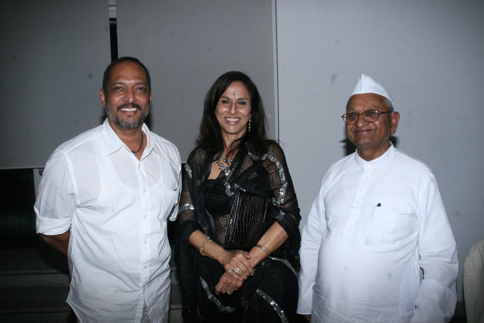 Well.... this picture was taken last week at the Star Majhaa Awards. I must say, as an awardee, it was a rare honour for me to be sharing the same platform with Anna, who said he'd accepted this particular award only because it was given by people 'with clean hands'. Nana Patekar, who was the chief guest, had a lot to say about that remark.... I shall not repeat Nana's comments here!