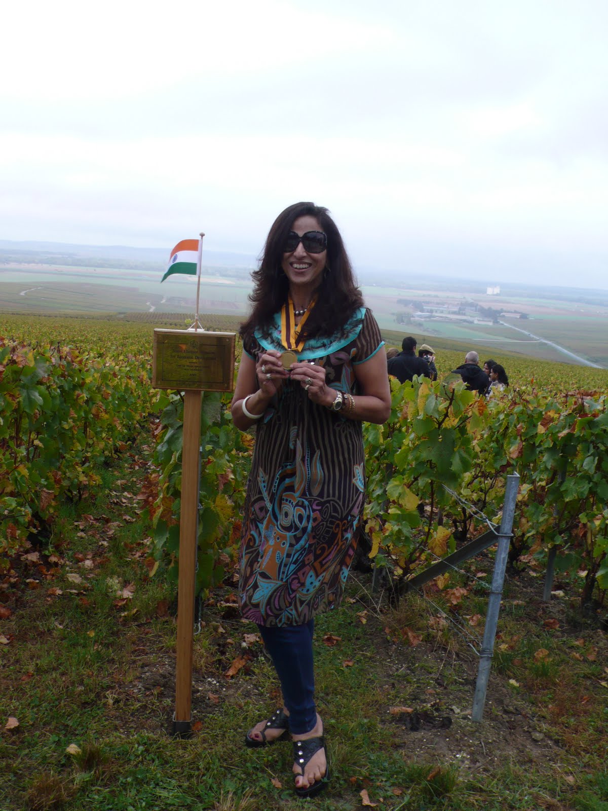 I was very impressed by the solemn, dignified manner with which the ceremonies were conducted over two intense days. Workshops, brain storming sessions, working lunches, and of course, fabulous dinners and celebrations with the best vintages. But it was the vine baptism ceremony that I most enjoyed. And the awarding of the medal. And no, 'Another Kiran from New York', disappointingly enough,there were no gold painted men in loin cloths peeling grapes pour moi. Just Stephane ( last pic) dressed appropriately like a French country squire! The formal black tie dinner at Les Crayeres (third last pic) was when my Tribute was presented in the most elegant setting and matching manner. I'd like to believe I responded equally elegantly! And if you are admiring the standing chandelier in the second last pic, it is indeed magnificent. After all, it is in the Maison Baccarat. Sigh!