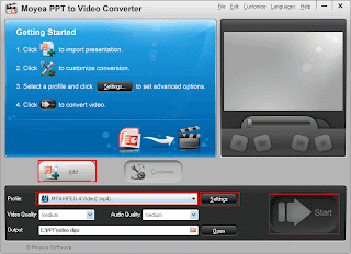 Powerful but easy to use, in 3 steps you can convert PowerPoint 2010 to any video formats. Run the program and click “Add” to add PowerPoint files. Then select a video format from the “Profile” drop-down list. If you know knowledge about computer and video parameters, you can click “Settings” to edit the output video parameters. That’s all, hit “Start” button to start PowerPoint 2010 to video conversion.