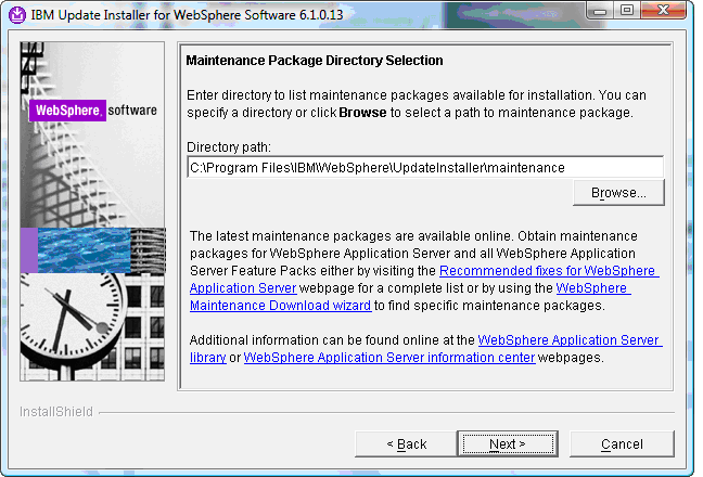 To apply this PAK file, as with any other PAK file, we have to download it, and move the PAK file into the maintenance directory of the WebSphere Update Installer. In our case, since we installed the Updater Installer into the C:\Program Files\IBM\WebSphere\UpdateInstaller directory, the directory we want to place PAK files is: