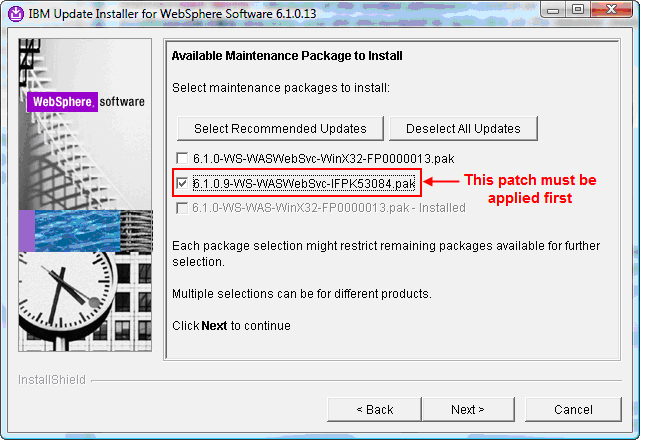 Now that we have updated WebSphere and added the Web Service Feature Pack, we need to apply two updates for the Web Service Feature Pack that are available: